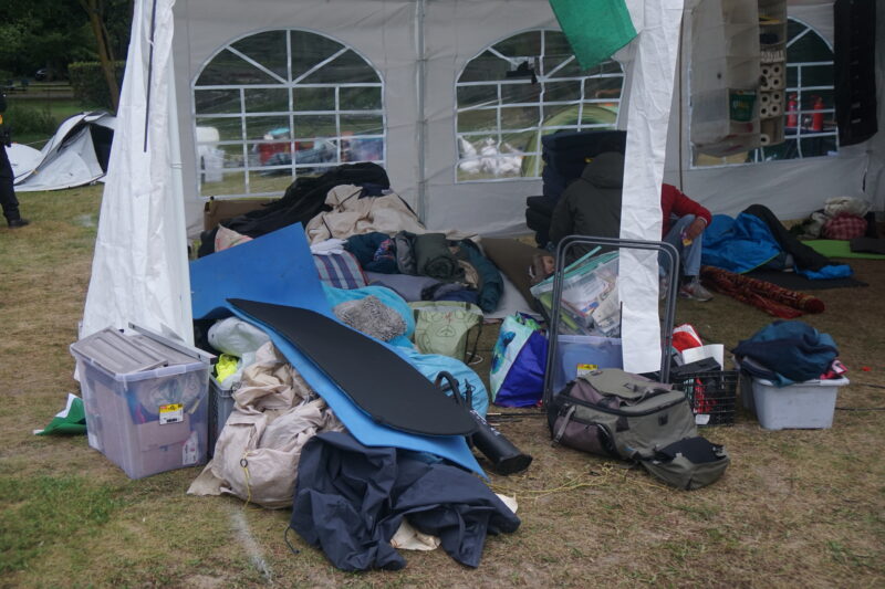 Seit dem 15. Juni 2025 wird auf einer Grünfläche vor dem Bundeskanzleramt ein Dauercamp abgehalten, das als Versammlung angemeldet ist. Nachdem die Teilnehmenden in der Vergangenheit immer wieder auf verschiedene Weise lautstark in Erscheinung getreten waren, ordnete die Polizei Berlin am 14. Juli 2025 die Verlegung der Versammlung auf einen Teil des Washingtonplatzes vor dem Berliner Hauptbahnhof an. Dem kamen die Teilnehmenden vorerst nach.